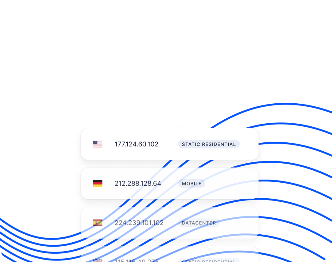Tránh mọi hạn chế và truy cập bất kỳ nội dung địa động nào với mạng proxy dân cư rộng, ổn định và nhanh chóng. Mua một máy chủ proxy để nhận được: